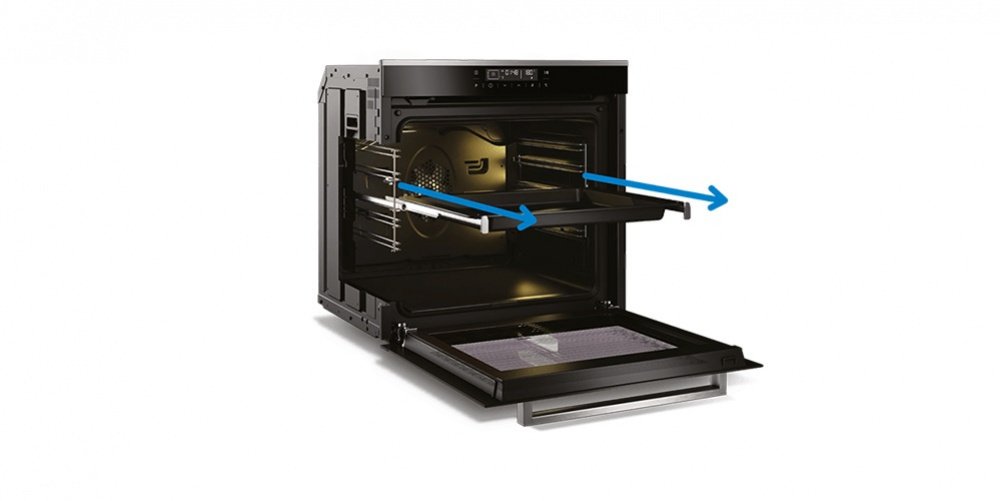Безопасное и удобное извлечение противня. Если вам трудно доставать из духовки тяжелые блюда, телескопические направляющие упростят вашу жизнь. Система направляющих позволяет полностью (или на 2/3 для моделей с частичными телескопическими направляющими) выдвинуть противень из духовки и обеспечивает его поддержку.
