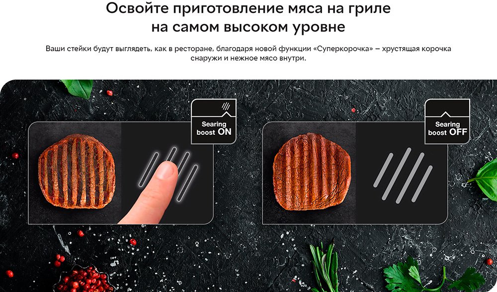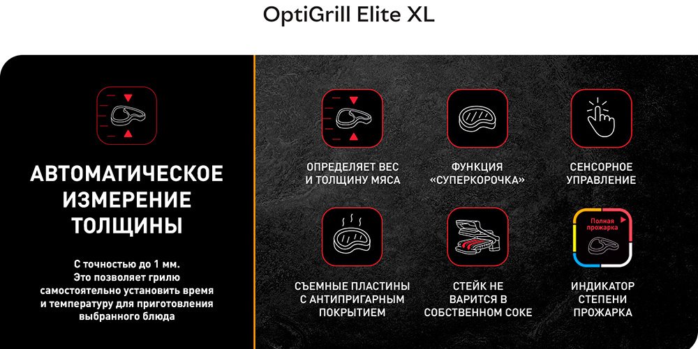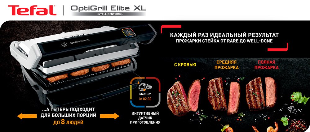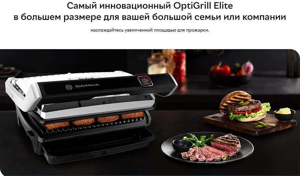 Овладейте искусством приготовления на гриле с домашним грилем OptiGrill Elite XL, предлагающим безупречное приготовление блюд на 8 человек, которого хватит, чтобы удовлетворить даже самую голодную семью. Откройте для себя безупречный опыт приготовления на электрическом гриле: интуитивно понятный помощник по приготовлению на гриле предлагает пошаговые инструкции по приготовлению rare, medium или well-done мяса, приготовленного на гриле до совершенства.