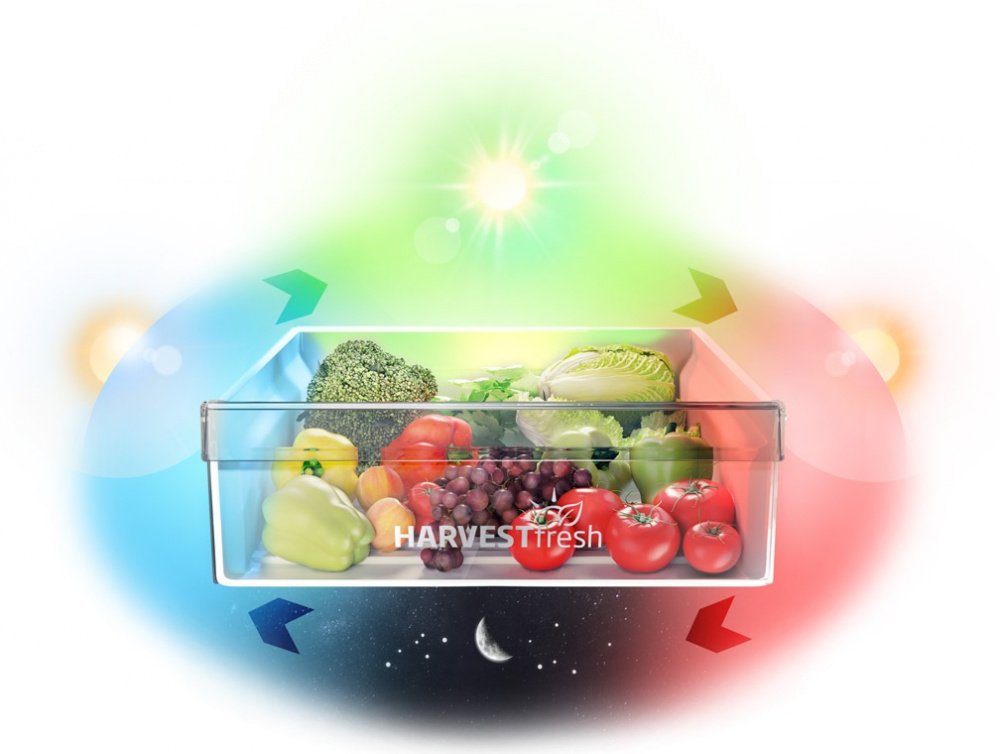Специальные лампы, которые установлены в отделении для овощей и фруктов имитируют суточный солнечный цикл. Известно, что солнце в разное время светит по-разному, поэтому мы воссоздали этот естественный цикл: утром голубой цвет, днем - зеленый, в вечернее время - красный, а также добавили фазу сна, при которой продукты находятся в темноте.