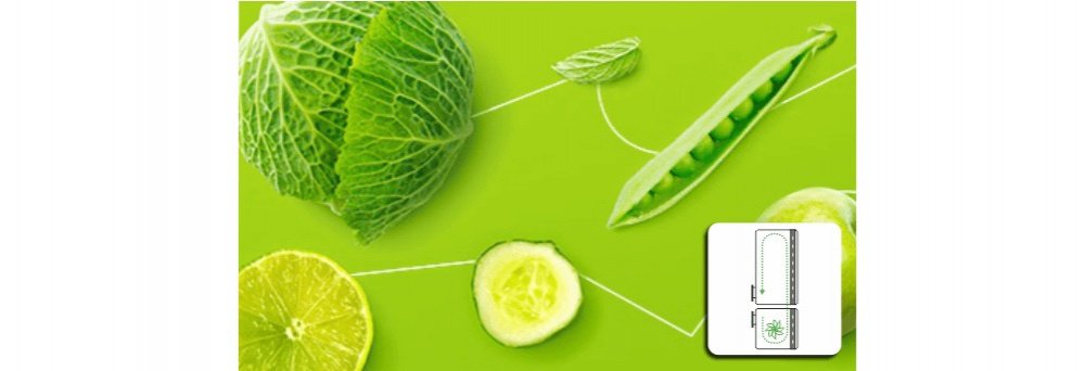Два выдвижных ящика со встроенным регулятором влажности позволяет хранить фрукты и овощи свежими до 15 дней.На основе изменения внешнего вида и визуальной оценки качества в сравнении с обычными фруктами и овощами. Результат внутреннего тестирования.