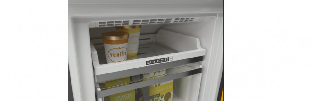 Специальная полка простого доступа на направляющих выдвигается таким образом, что позволяет быстро достать те продукты, которые Вы чаще всего используете.