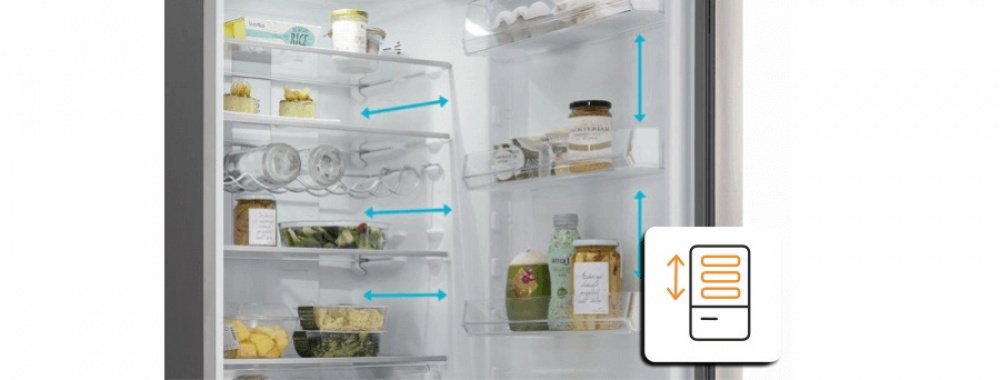 Инновационный дизайн предоставит комфортное управление пространством и многообразие эргономичных решений для хранения продуктов и напитков. При этом у Вас всегда будет возможность перераспределить пространство так, как это нужно Вам.