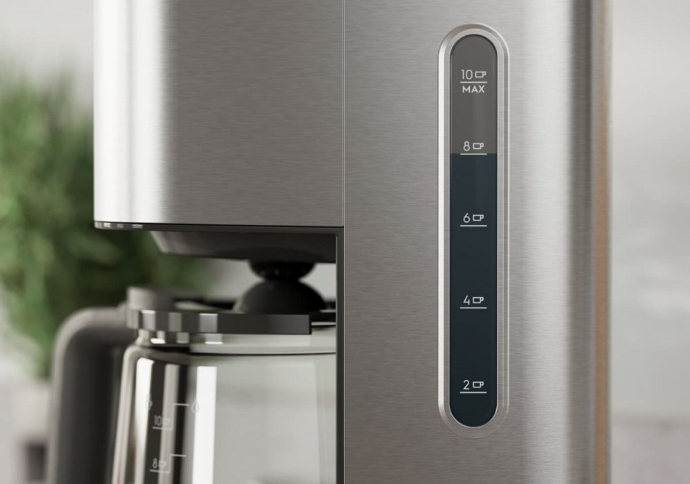 Четкая, видимая индикация уровня воды и дозировки обеспечивает точное отмеривание для 2–10 чашек свежесваренного кофе.