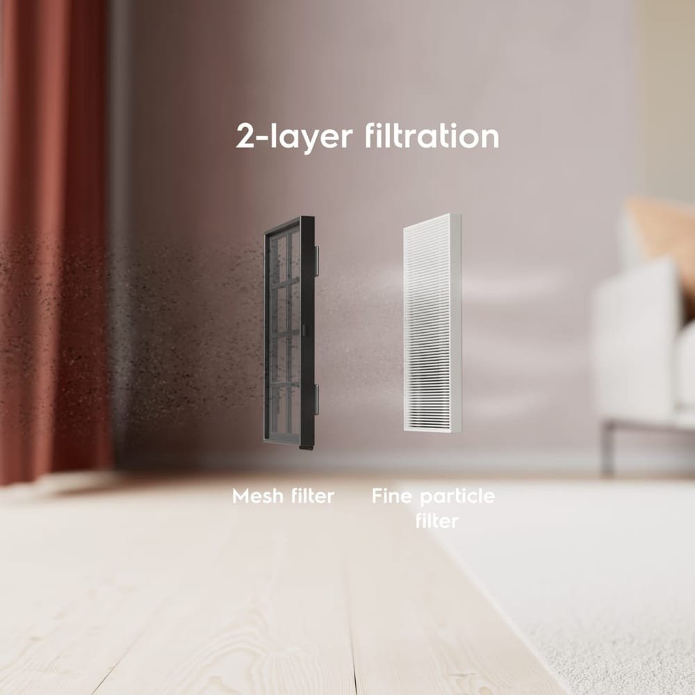 Двухуровневая система фильтрации удаляет до 99,5% мелких частиц пыли размером 0,35-10 мкм