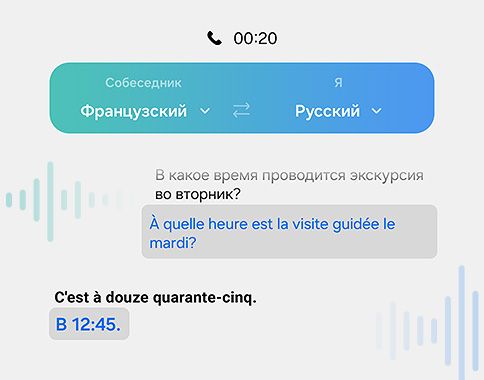 Путешествуете за границу, и нужно пообщаться с местным населением? Функция "Переводчик" мгновенно переводит любое потоковое аудио - от ваших реплик до выступлений на международных конференциях или рассказа гида во время экскурсии.