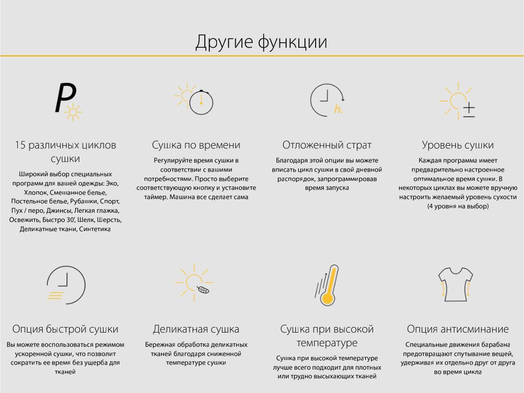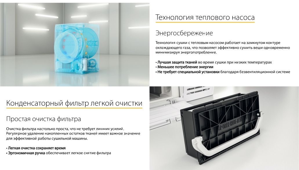 Как только вы выберете программу, умные сенсоры самостоятельно отрегулируют параметры цикла в соответствии с количеством, влажностью и температурой ткани. Алгоритмы технологии 6TH SENSE контролируют уровень влажности вещей в процессе сушки. Это позволяет оптимизировать использование энергии и времени для получения наилучших результатов.