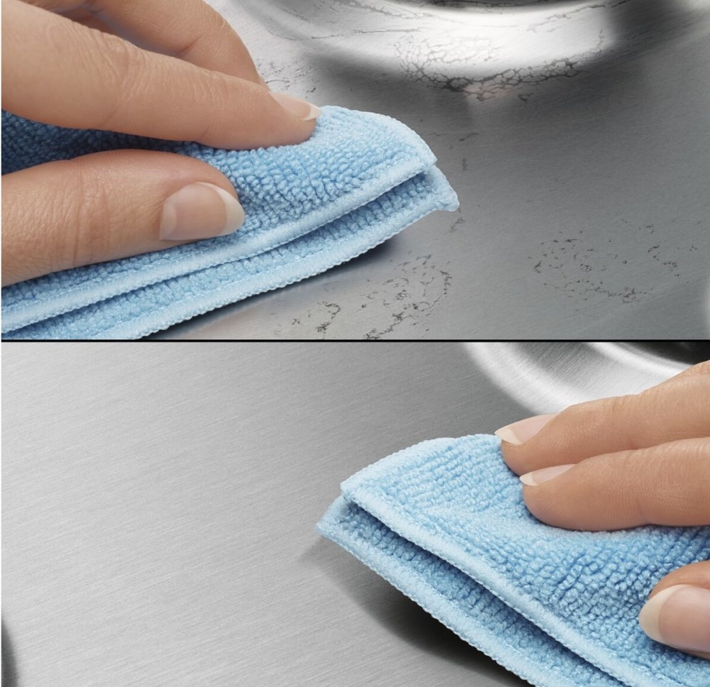 Покрытие для варочной панели из нержавеющей стали Easy2Clean экономит ваше время и силы — оно устойчиво к царапинам и пятнам и легко очищается от загрязнений с помощью мягкой влажной ткани.