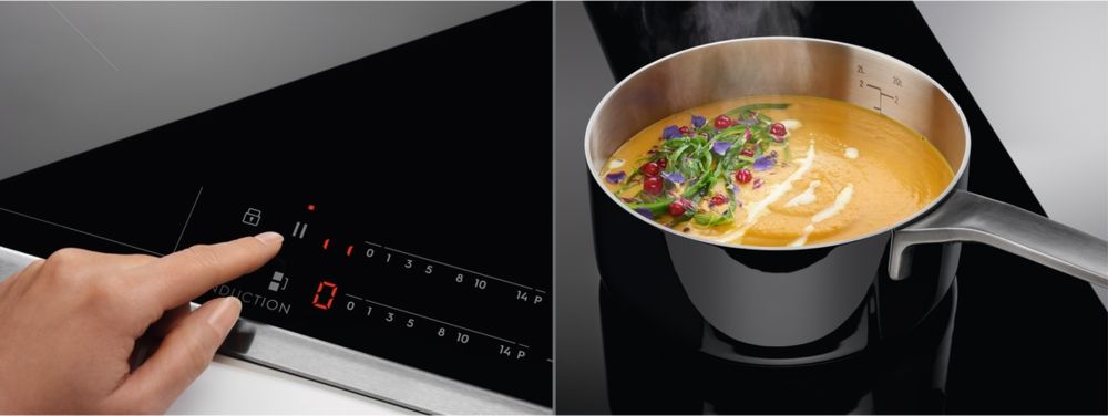 Легко настраивайте температуру варочной поверхности благодаря сенсорным элементам управления. Каждая зона нагрева имеет отдельную регулировку мощности, поэтому легко увидеть и изменить настройки нагрева. А благодаря тому, что варочная панель представляет собой одну гладкую поверхность, ее легко очищать.
