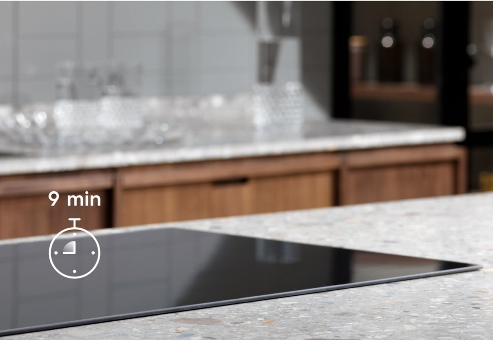 Индукция быстро и точно нагревает непосредственно нужный объект, в то время как окружающее его пространство остается холодным и безопасным. Она также обеспечивает мгновенное изменение температуры. При этом гладкая поверхность упрощает очистку.