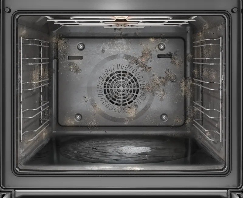 Ваш духовой шкаф слегка загрязнен и нуждается в быстрой очистке? Просто налейте на дно рабочей камеры примерно 400 мл воды с каплей жидкого моющего средства и выберите соответствующую программу очистки. Экологическая система очистки размягчает остатки, что значительно облегчает их последующее вытирание.