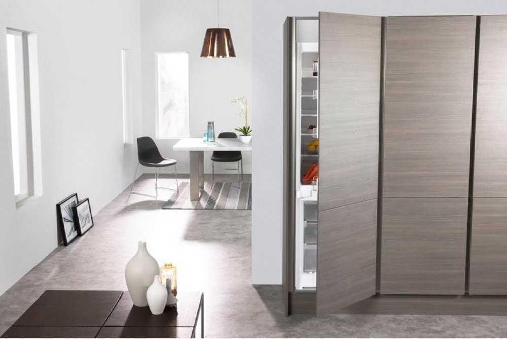 Гибкость при установке холодильника в вашей кухне. Благодаря тонкой дверце и специальной конструкции петель, дверь не выступает за пределы шкафа холодильника при открывании и не соприкасается с кухонной мебелью или стеной кухни, даже если холодильник находится рядом с ними.
