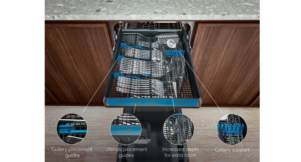 Выдвижной ящик MaxiFlex рассчитан на столовые принадлежности большинства форм и размеров. Регулируемые разделители этого глубокого ящика позволят с легкостью загрузить в него любое содержимое, каким бы большим и громоздким оно ни было.