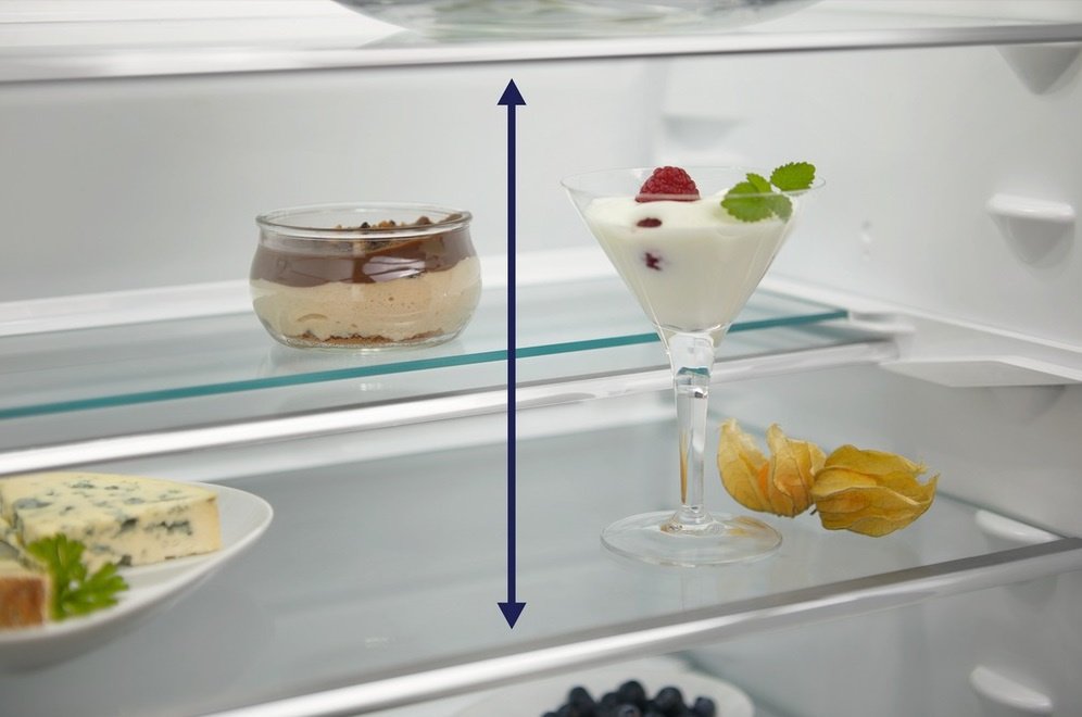 FlexiShelf поможет организовать внутреннее пространство холодильника на ваше усмотрение. Передвижная стеклянная полка половинной длины сдвигается назад или выдвигается полностью или наполовину, освобождая место для более высоких предметов. Гибкие решения хранения на любой вкус.