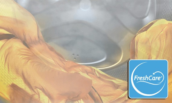 Інноваційна технологія FreshCare+ підтримує свіжість, запобігає утворенню неприємних запахів і перешкоджає пересиханню Ваших речей у барабані пральної машини до 6 годин після завершення циклу прання. Ця технологія стане незамінною в тих випадках, коли Ви не встигли або просто забули дістати білизну відразу після прання. Цикл FreshCare+ передбачає періодичні двоспрямовані обертання барабана та помірне відпарювання, що покращує циркуляцію повітря та перешкоджає появі бактерій, які є причинами неприємних запахів.
