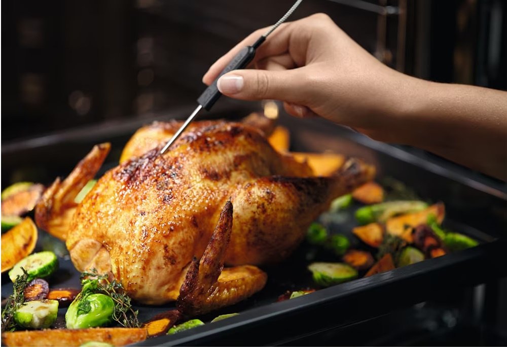 Завдяки термощупу ви зможете щоразу добиватися ідеальних результатів. Він дозволяє стежити за перебігом приготування, вимірюючи температуру всередині продукту. Він навіть дасть вам знати, коли їжа доведена до потрібної температури і завершить приготування.