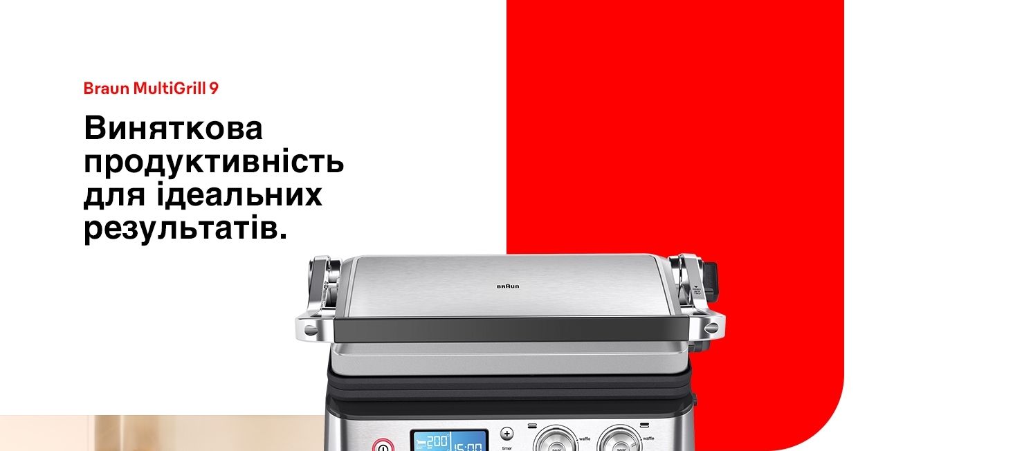 Нержавіюча стальГабарити в упаковці (ВхШхГ), смОпис Гриль Braun MultiGrill 9 CG CG9047