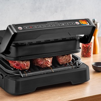 OptiGrill 2в1 самостійно вимірює товщину будь-яких продуктів з точністю до міліметра, підраховує кількість шматочків та автоматично регулює час та температуру приготування – для гарантованого ідеального результату, з рівнем просмаження від rare до well-done!