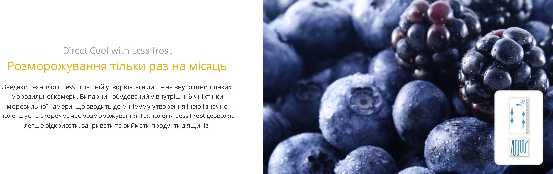 Технологія LessFrost це поліпшена конструкція випарника морозильної камери, яка дає змогу: