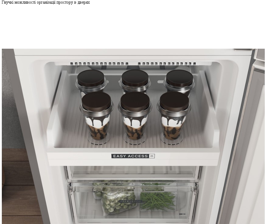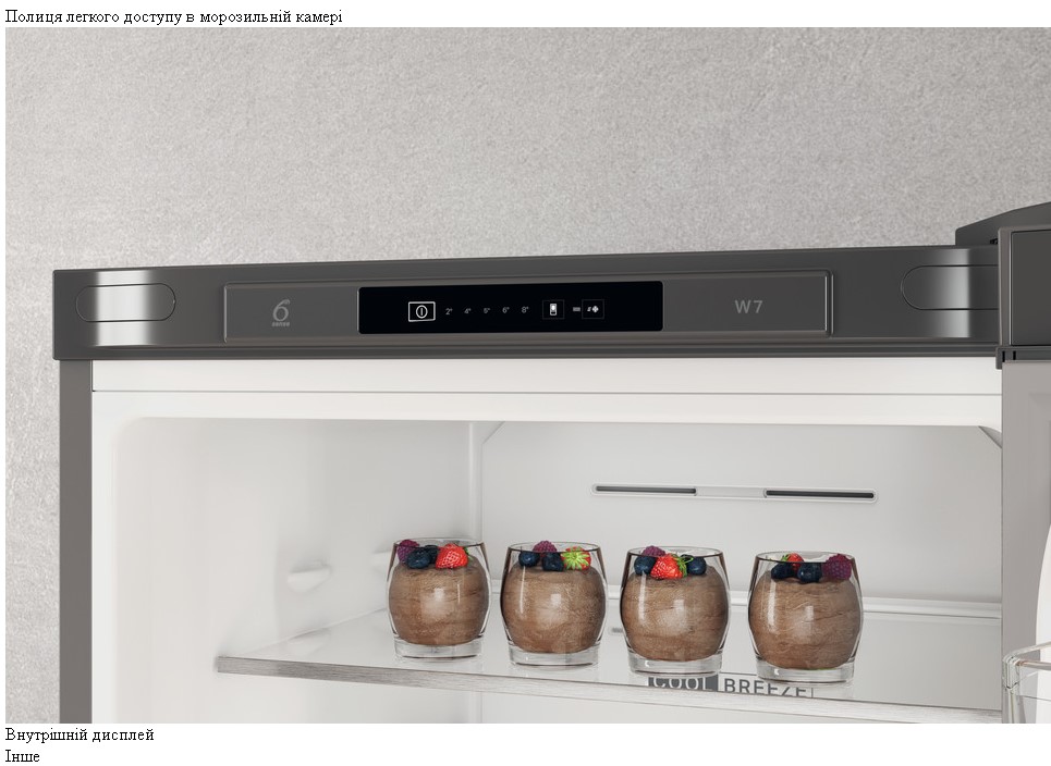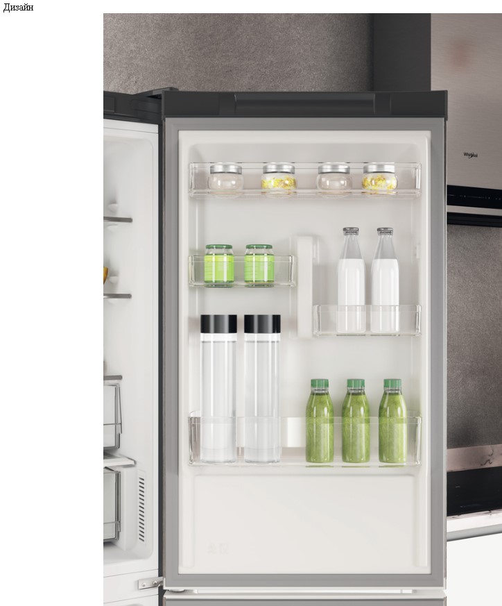 Насолоджуйтесь неймовірною свіжістю та якістю продуктів! Холодильник Whirlpool W7X 82I OX з нижньою морозильною камерою: з системою охолодження Total NoFrost. З технологією Total NoFrost у холодильнику Whirlpool повітря в морозильній камері автоматично осушується, завдяки чому не потрібно витрачати час на розморожування. Крім того, заморожені продукти не прилипають до стінок, етикетки залишаються розбірливими, а місце для зберігання продуктів - чистим. Датчики 6th Sense виявляє найменші зміни температури і вологості та негайно відновлює їхній рівень одразу після того, як Ви покладете продукти в холодильну камеру і закриєте дверцята. Whirlpool W7X 82I OX має клас енергоефективності А++, що забезпечить якісні результати в поєднанні з низьким рівнем енергоспоживання. Користуйтеся перевагами швидкого доступу до продуктів завдяки спеціальній полиці простого доступу на напрямних, вона висувається таким чином, що дає змогу швидко дістати ті продукти, які Ви найчастіше використовуєте.