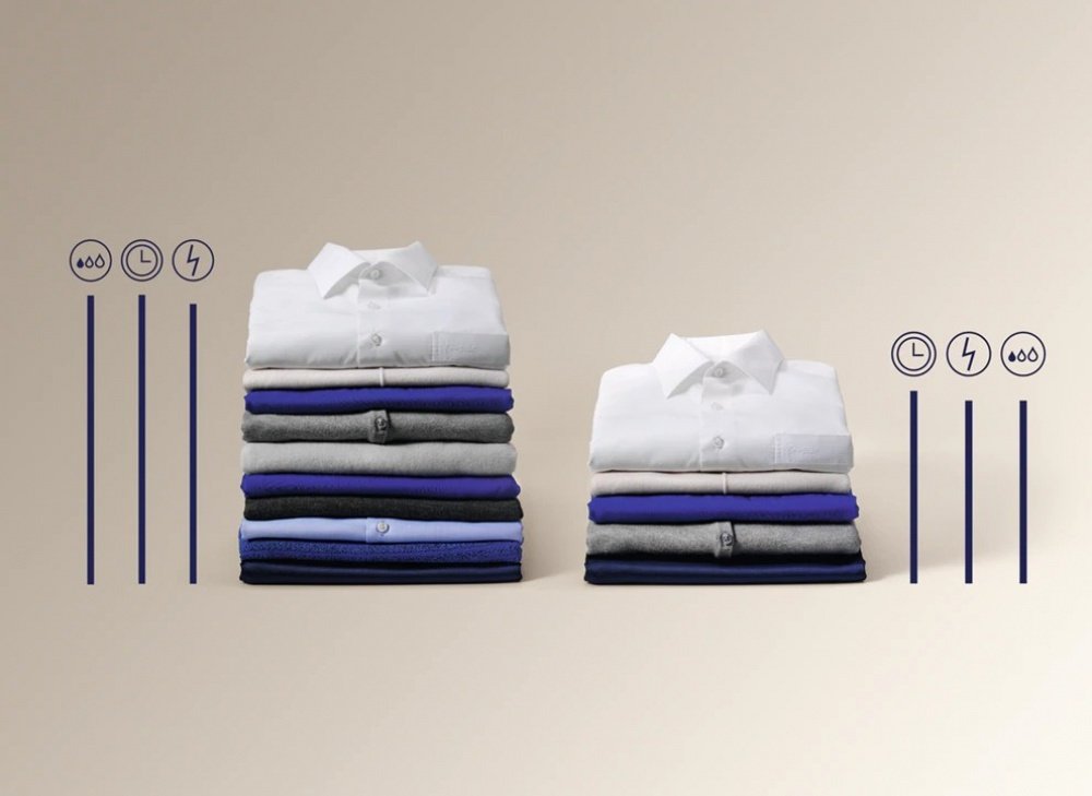 Система SensiCare підлаштовується до завантаження, не допускаючи перестіриванія одягу. Це дозволяє речам довше зберігати вигляд і форму, а також економить воду і електроенергію.