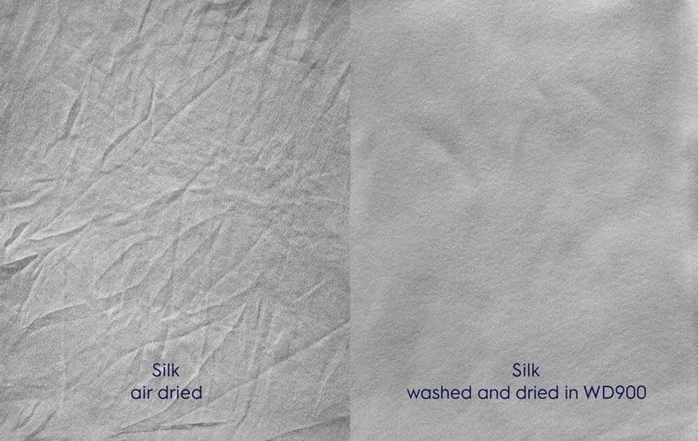 Washer Dryer 900 дає впевненість при пранні та сушінні улюбленого одягу, з чого б вона не була зроблена, включаючи шовк і пух. Система DelicateCare з тепловим насосом підбере низьку температуру та потрібні рухи барабана для будь-якої тканини. Навіть на одязі з шовку буде до 50% менше складок.На шовковому одязі з'являються до 50% менше складок