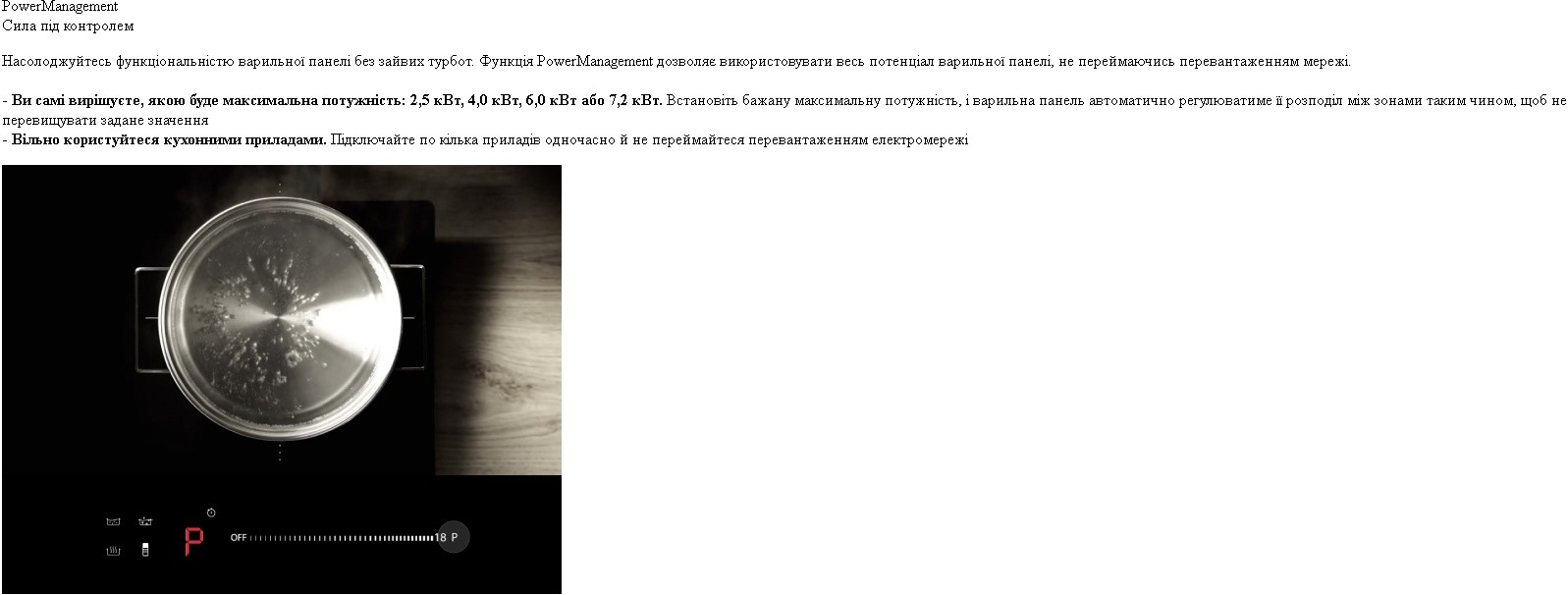 Індукційна варильна поверхня Whirlpool WSQ4860NE - економно і швидко. Індукційна технологія нагріває виключно посуд, що знижує втрату енергії та забезпечує ідеальний результат. Щоб уникнути ризику перевантаження блоку живлення у вашому домі, Whirlpool винайшов функцію керування живленням, Ви самі можете встановити рівень потужності плити. Варильна поверхня оснащена конфоркою швидкого нагріву, для досягнення незабутніх результатів ще швидше і ефективніше. Варильна панель Whirlpool WSQ4860NE закип'ятить воду дуже швидко і буде підтримувати її киплячою, одночасно знижуючи рівень споживання електроенергії.