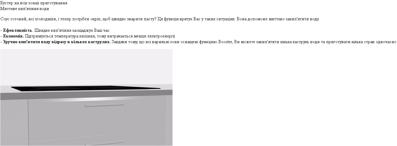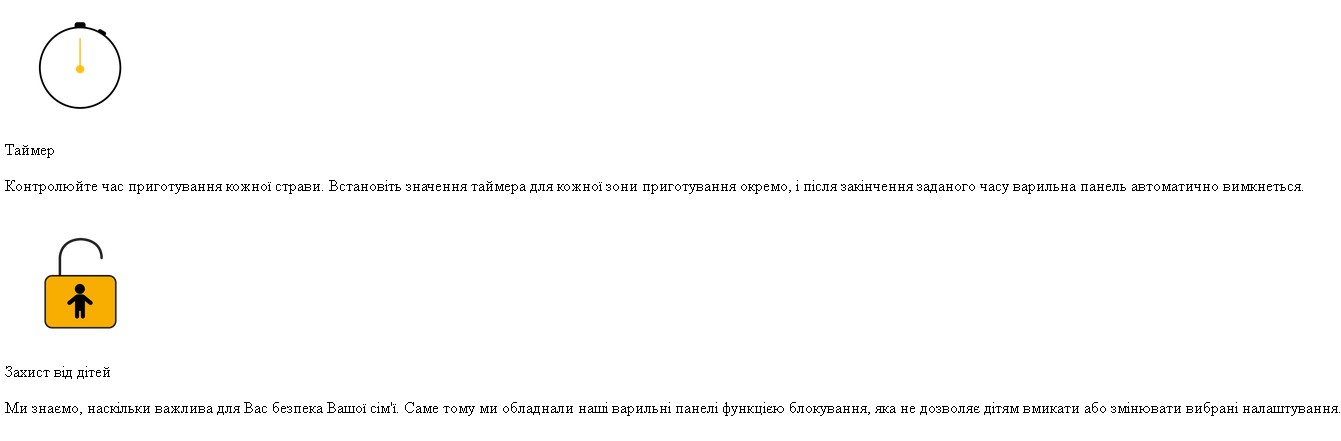 Захист від дітей, Індикатори залишкового тепла, Сенсорне керування, Функція Booster
