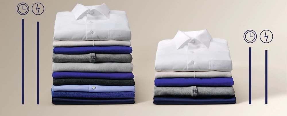 Система SensiCare зважує кожне завантаження білизни і коригує цикл, точно вибираючи тривалість прання. Це дозволяє уникнути перестіриванія і допомагає речам зберегти вигляд і форму.