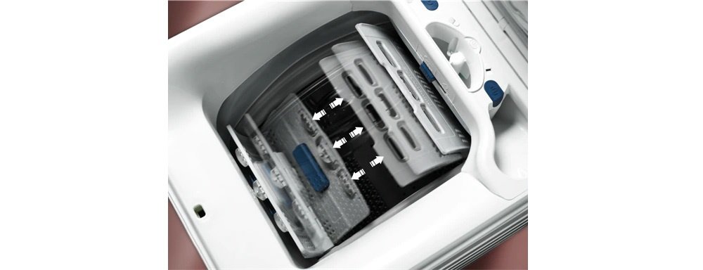 Система м'якого відкривання спрощує завантаження та розвантаження білизни. Кришка з натискною кнопкою та м'які внутрішні дверцята барабана полегшують та спрощують доступ. Верхнє розташування отвору забезпечує зручний огляд вмісту.